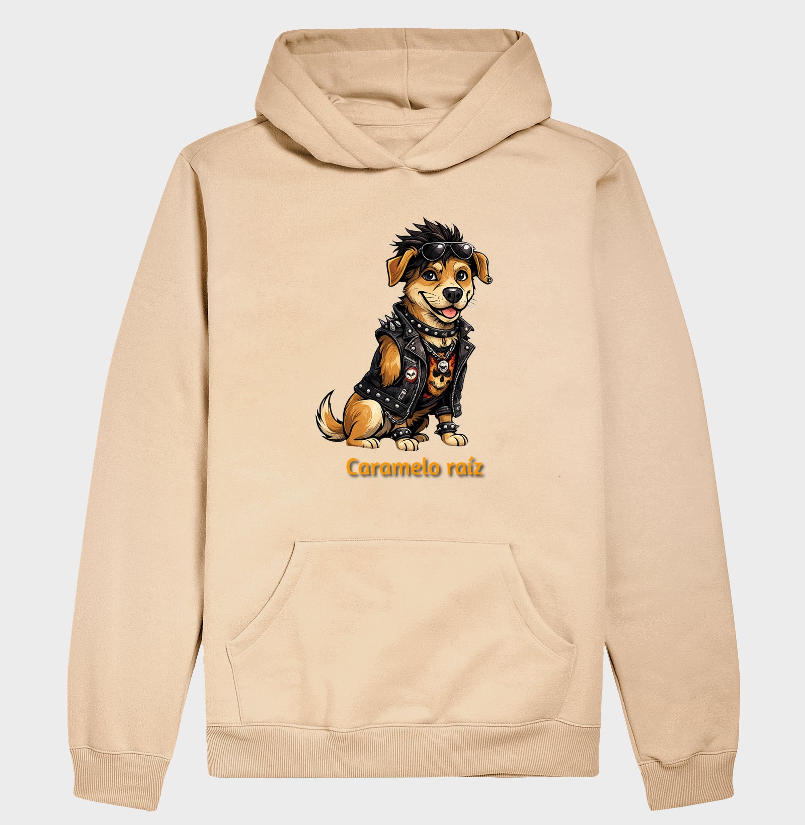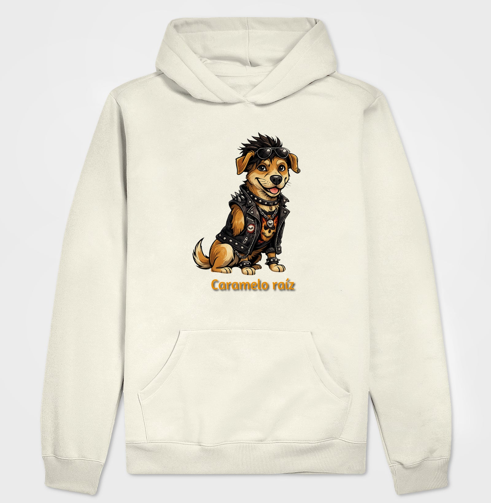 Moletom com estampa exclusiva do Caramelo em versão rockeira. Design urbano, traço marcante e mensagem de liberdade e personalidade.
