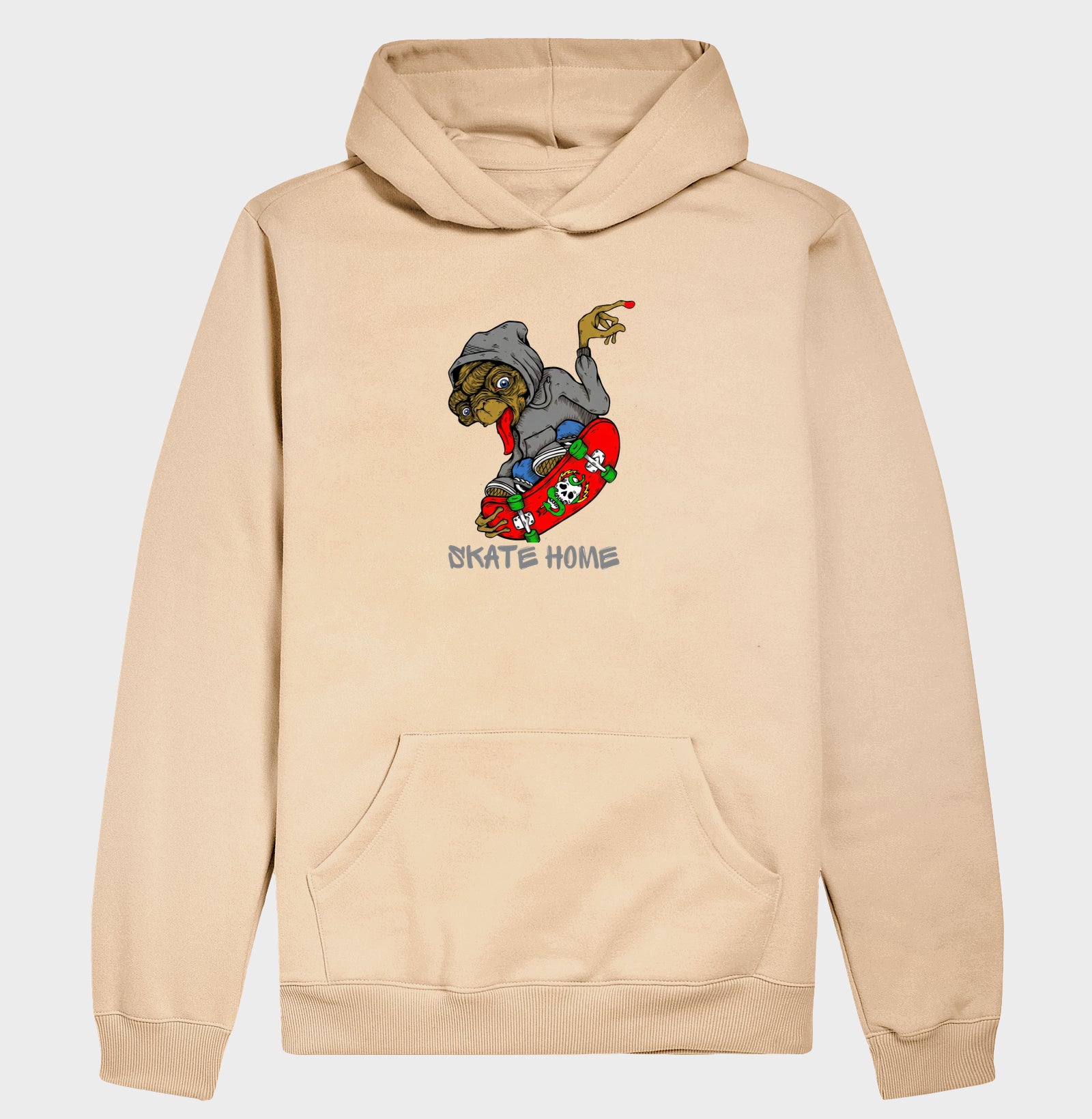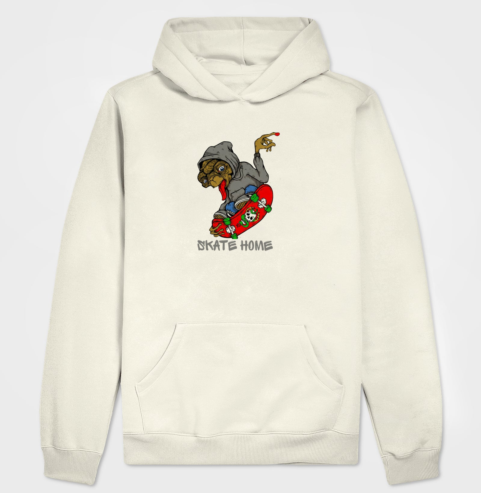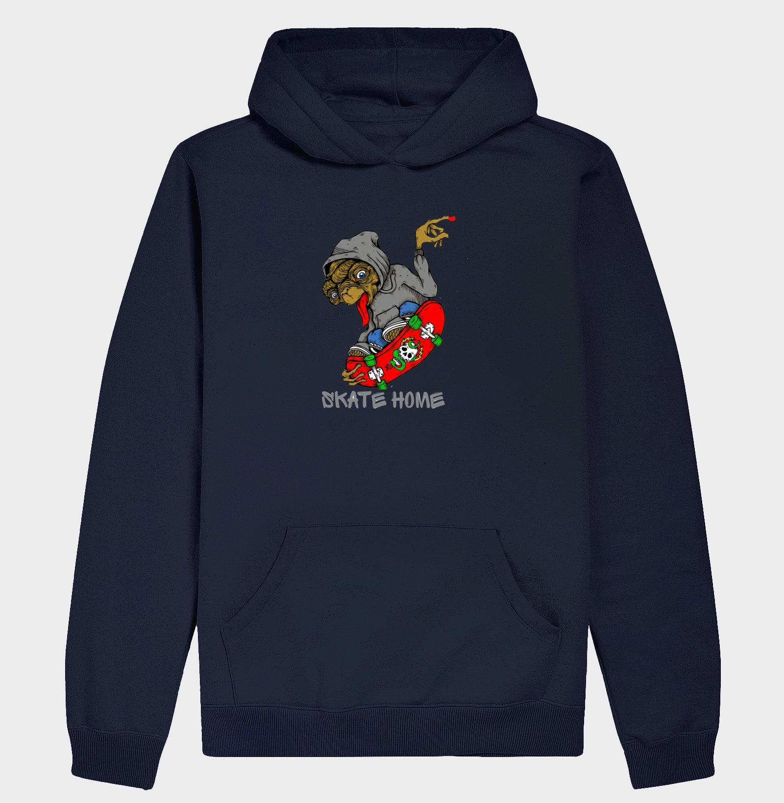 A nostalgia encontra o streetwear radical! Esta estampa exclusiva traz o E.T. reimaginado de moletom e skate, transformando o ícone dos anos 80 em um rider urbano. O design, com traços vetoriais nítidos, é complementado pelo slogan inteligente 'SKATE HOME', que subverte a frase clássica em um símbolo de liberdade nas ruas. Uma peça ousada e essencial para quem tem atitude de outro mundo.